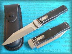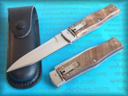 All of them have stronger springs, improved lever and are made with tighter tollerances. The Cocobolo wood, Turkish Walnut, horn and stag pieces come with quality leather sheaths and are also available with rear bolsters (b). ABS models have pocket clips for "tip-down" carry.