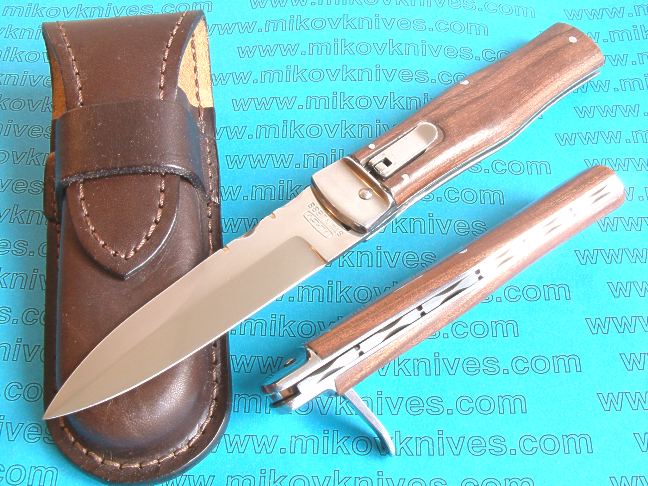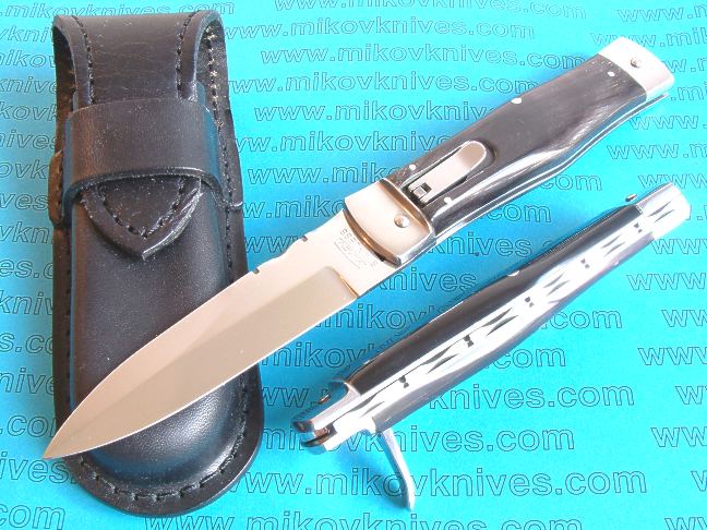 They are new improved Mikov autos. The blades are made of premium RWL-34 steel manufactured in Sweden (HRc 60-61). All listed knives have thicker liners, new modified grind, stronger spring, improved lever and are made with tighter tollerances. The blades are mirror finished and numbered. All RWL-34 knives have fileworked backspring + blade and come with quality leather sheaths. Please check Price list for prices and availability. All RWL-34 knives are available on order only |
